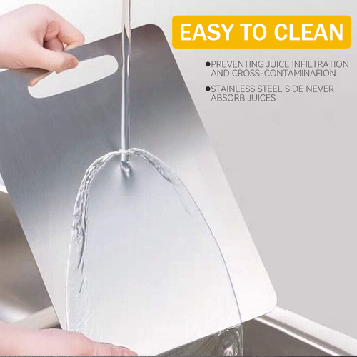 Unlike wood or plastic, stainless steel is non-porous. It does not absorb water, juices, or bacteria. This means no more cross-contamination and zero lingering smells from garlic, onions, or fish. A quick rinse is all it takes to reset the surface.
